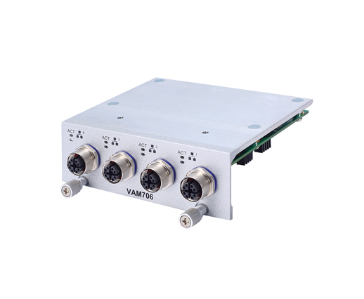 Axiomtek VAM706/VAM707 Value-added Module with 4 M12 X-coded GbE LAN and PoE.